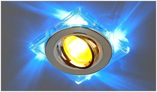В первую очередь, светильники для натяжного полотна должны быть круглой формы. Причем это относится в большей степени к посадочному отверстию, что требуется для установки в натяжной потолок светильника. Обычно не редкость, что квадратный либо другой формы светильник в имеет круглый посадочный узел. Подобный точечный светильник кроме этого подходит.