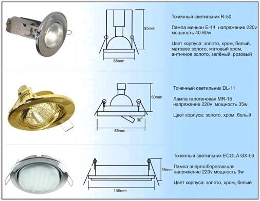 Монтаж точечных светильников