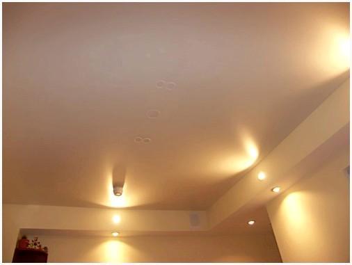 А при неравномерном освещении сатиновый натяжной потолок будет смотреться весьма уникально. К примеру, в случае если полотно сатина будет голубого цвета, то в дневное время около окна будет четко виден светло синий оттенок, а около светильников будут проблескивать белые цветовые штрихи.