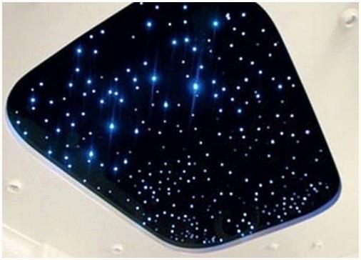 Оптоволокнистые светильники – новинка на рынке осветительных устройств. Посредством таких светильников создаются необыкновенные эффекты – звездные пейзажи. Монтаж потолков с оптоволокнистыми светильниками трудоемкий и дорогостоящий. Данный вариант применим лишь для помещений с высокими потолками.