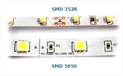 - Тип диода. Наиболее распространены диоды SMD3528 и SMD5050.