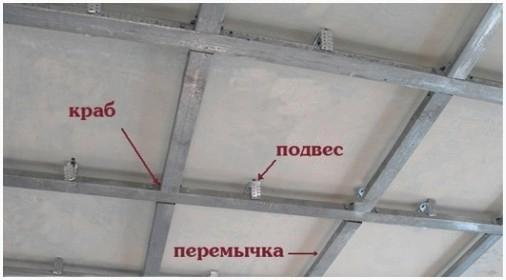От уровня потолка отойти 10 см и провести горизонтальную линию по периметру всего помещения. Закрепить стартовый профиль вдоль отмеченной линии. Основной профиль вставить в стартовый и зафиксировать его к потолку при помощи подвесов. Расстояние между крепежами – около 40 см.