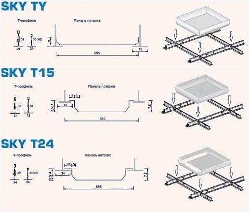 3. SKY светло синий – края кромки имеет прямоугольные формы. Панели употребляются для монтажа на подвесной системе, видимая ширина планок которой образовывает 24 мм (подвесная система Т24). Поверхность установленного потолка ровная.