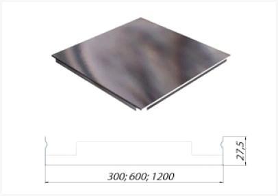 Панели квадратной формы выполнены из особо прочного алюминия либо оцинкованной стали. Будучи окрашенными синтетическими красками, кассеты отличаются долговечностью и стабильностью во мокрой и агрессивной среде. Прочный материал и достаточно стойкое покрытие снабжают возможность многократной сборки и разборки потолка.