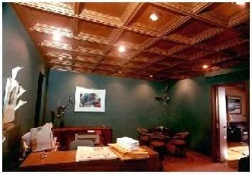 2. Изготовленные из плит ДСП и ДВП. Отличный вариант для строгого офисного оформления. Не обращая внимания на сложность монтажа и кажущееся «утяжеление» интерьера отличаются респектабельным внешним видом, придавая камерную атмосферу. Благодаря большому выбору фактур и цветовых решений, и возможности имитации любой поверхности кассетные потолки из плит ДСП и ДВП дизайнеры деятельно применяют для эксклюзивной отделки потолочного пространства.
