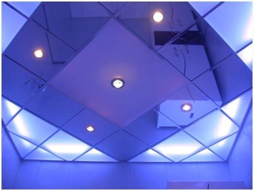 5. Зеркальные. Превосходно справляются с задачей визуального расширения пространства, создают иллюзию бесконечности, наполняют светом и воздухом. Презентабельный внешний вид и многообразие дизайнерских решений, большой уровень функциональности и хорошие эксплуатационные характеристики, хороший уровень освещенности и эргономичный монтаж в сочетании с возможностью нанесения на поверхность декоративных узоров выделяют зеркальные кассетные потолки в отдельную группу потолочных покрытий. Для эксклюзивного оформления потолочного пространства дизайнеры применяют как яркое, так и тонированное зеркало.