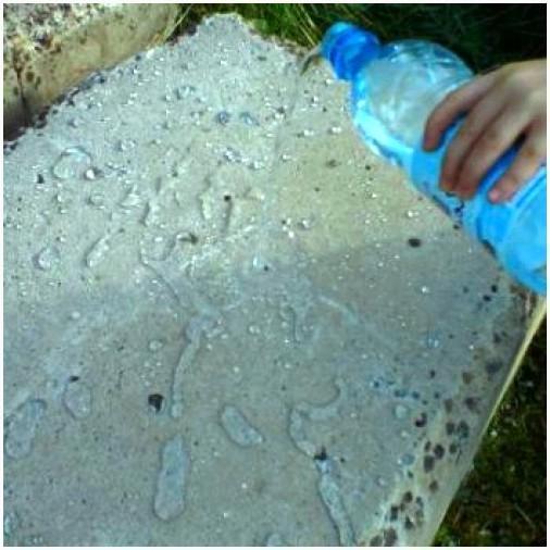 На фото ниже — камень, обработанный гидрофобизатором. Видно невооруженным глазом, как на него воздействует вода — поверхность ее отталкивает!