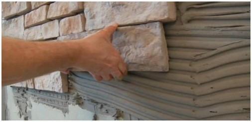 По окончании подсыхания грунтовки приступают к поклейке каменных плиток. Стенки и камень смазывают клеем либо раствором (достаточно густо). С целью этого употребляется простой плиточный клей. Камень прижимают к стенке и держат, пока он не сцепится со стеной. Укладку реализовывают различными методами: