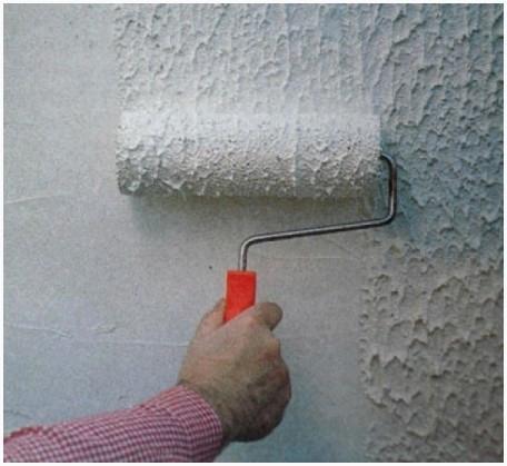 - Значительно чаще фактурная штукатурка «шуба» наносится валиком. Делается это следующим образом: смесь наносится ровным слоем на стену, а после этого прокатывается валиком по мокрому слою в нужном направлении. Так же практикуют нанесение смеси сходу валиком, наряду с этим не нужно его через чур очень сильно прижимать к поверхности. Дабы как следует распределить фактуру по всей стенке, нужно затевать движение валика от участка с громадным нанесением смеси к меньшему.