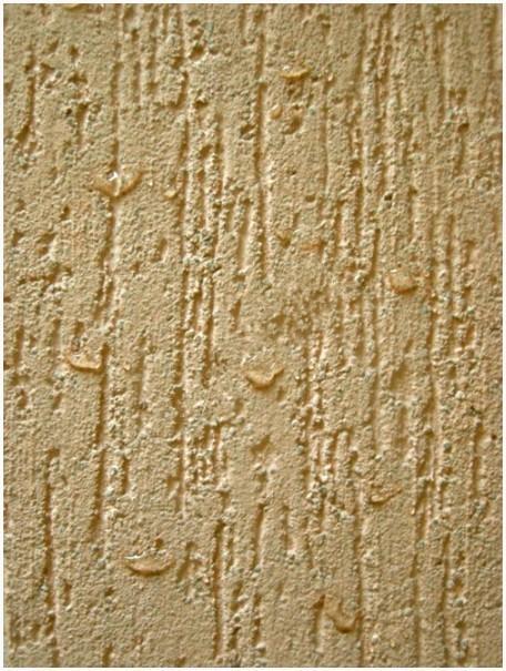 - По окончании нанесения «короеда» нужно покинуть поверхность мин. На 15-20, для легкого схватывания, а затем приступить к затирке, которая в зависимости от желаемого рисунка будет иметь разные направления движения. Так рисунок в виде «дождя» делается вертикально сверху вниз либо в один момент в двух направлениях. Кроме этого вероятно затирка и круговыми либо волнообразными движениями, все зависит от фантазии мастера. Для ровного перехода от одной полосы к другой возможно стыки легко намочить водой.