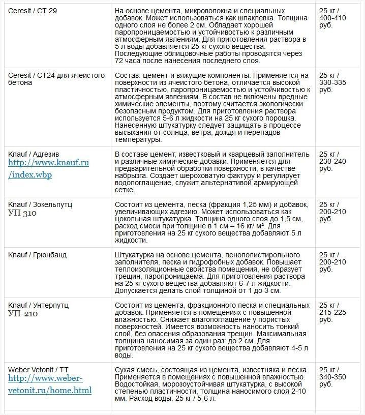 Разновидности цементно-песчаной штукатурки