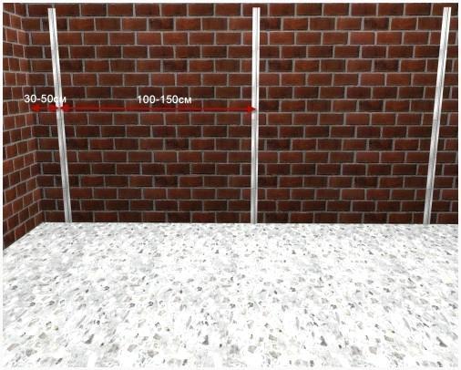 - В случае если предполагается что маяки останутся в стенке, то железные профили направляться обработать коррозийным составом, а деревянные – антигрибковыми средствами, и составами предотвращающими гниение.
