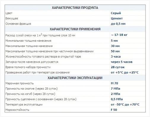 Технические параметры цементных штукатурок
