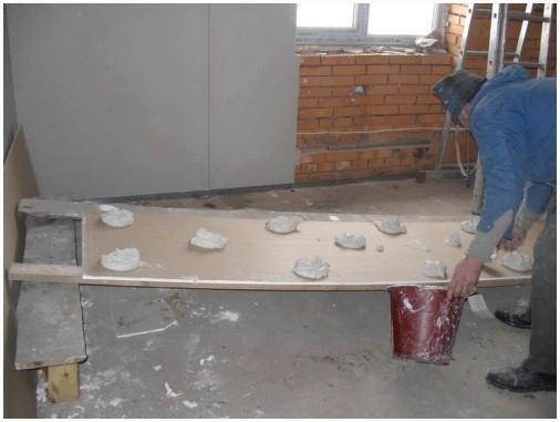 - Лист гипсокартона уложить на деревянные либо железные рейки.