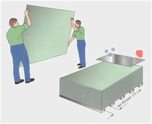На протяжении разгрузочно-погрузочных работ не допускаются удары по страницам гипсокартона