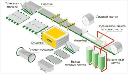 Для производства гипсокартона употребляется несколько станок, а специализированная автоматическая линия. В нее входит ряд автомобилей, делающие различные функции: замешивание, дозирование и подача составляющих, формирование ГКЛ, сушка, резка и упаковка. Линия по производству страниц гипсокартона стоит от 120 тыс. Долл.