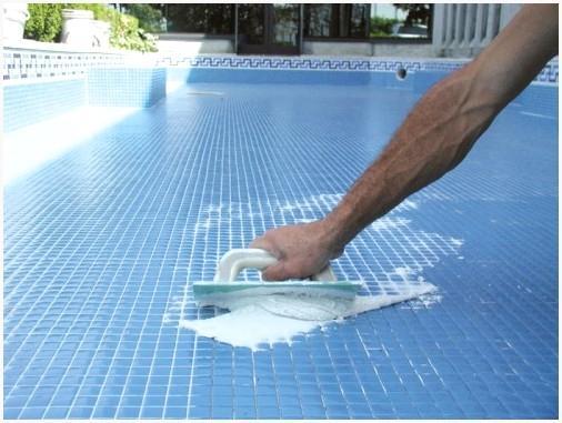 - Затирку швов плитки по окончании облицовки чаш бассейнов, душевых кабин и саун;