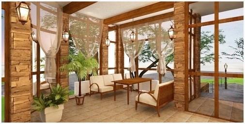 В то время, когда все подготовительные работы закончены, пришло время задуматься об интерьере вашей веранды. Возможно доверить его разработку опытному дизайнеру, а возможно совладать с данной задачей самостоятельно.Вариантов отделки открытых и закрытых террас достаточно большое количество. Рассмотрим наиболее популярные из них.