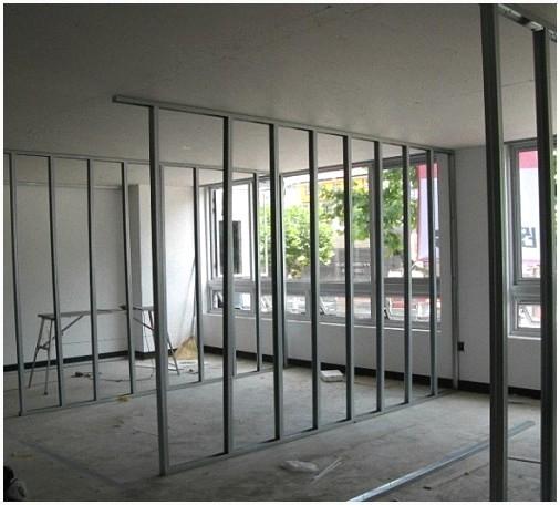 Дабы соорудить стенке применяют страницы из гипсокартона, для улучшения звуко- и теплоизоляции установка гипсокартона производится на ленту либо полиуретана либо резины. Протяженность перегородки неограниченная, а на высоту воздействует толщина стальной опоры и количество каркасных элементов.