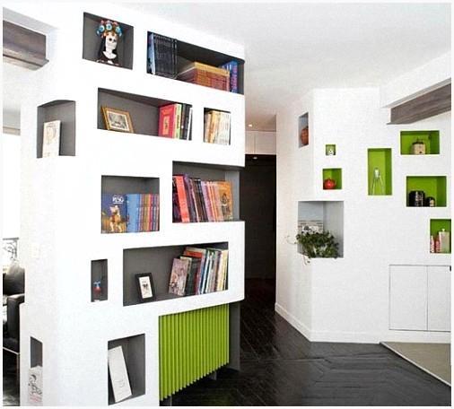 Межкомнатные перегородки в базе которых лежит гипсокартон — самый популярные, поскольку данный материал разрешает соорудить конструкцию любой формы и конфигурации. В качестве двери возможно установить арку. Помимо этого, из гипсокартона сооружают ниши, шкафы, разделяющие комнату на две.