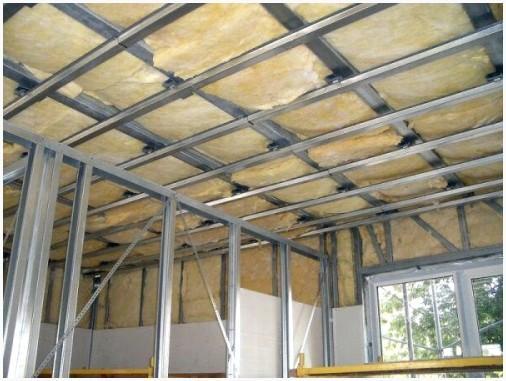 - Наполнение сены. Между страницами гипсокартона укладывают стекловату либо минеральную вату.