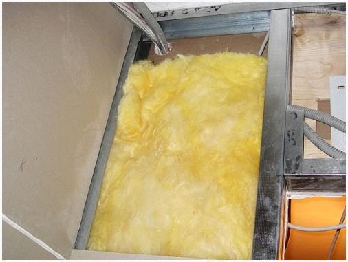 Стенки из гипсокартона нужно звукоизолировать. Для этого подойдет рулонная минеральная вата толщиною 600 либо 1200 мм (зависимо от ширины стенки). Вату нужно хорошо уложить между вертикальными профилями, дополнительно закреплять материал не нужно.