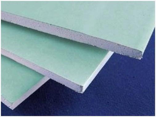 - ГКЛВ – водостойкий гипсокартон используется для выравнивания стен и создания перегородок во мокрых помещениях (ванная, балконы). Картонный слой ГКЛ пропитан гидрофобным составам, который максимально снижает свойство материала впитывать влагу.