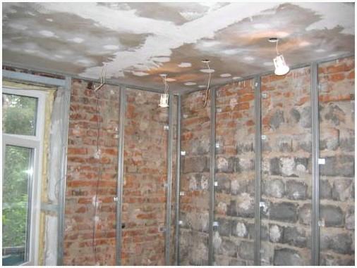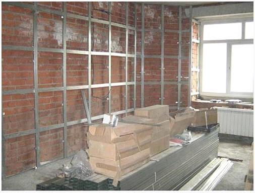 Затевать монтаж рекомендуется с потолочного профиля. Метод крепления зависит от материала, из которого изготовлены стенки. Если они из бетона либо кирпича, то потребуется перфоратор и установка дюбелей. На любой трехметровый профиль должно приходиться минимум 4 точки крепления. Стык в стык к нему крепится второй профиль, длину которого нужно подогнать под размеры стенки. Они должны быть выровнены при помощи уровня.