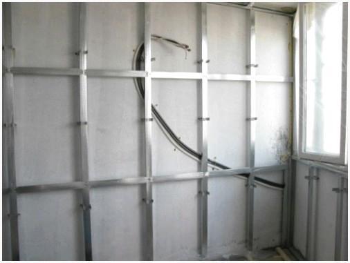 - В качестве направляющих,на лоджии рекомендуется применять железные планки, каковые, в отличие от деревянных, не подвержены искривлению и деформации из-за высокой влажности. Нужную длину легко отрезать ножницами по металлу либо болгаркой. Крепят начиная с углового профиля, расположенного в самом углу и по всему периметру лоджии. Ход обрешетки зависит от ширины гипсокартона и оттого, горизонтально либо вертикально он будет размешаться.