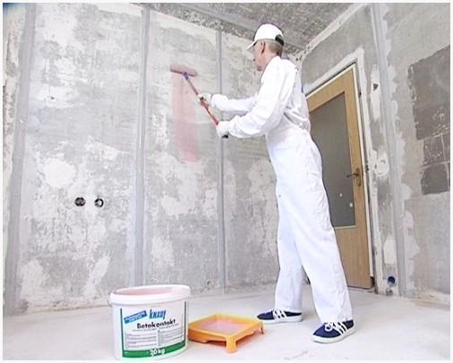 Бетоноконтакт наносится на чистую базу кистью либо широким валиком. Приблизительное время подсыхания грунта – до 4-х часов. Последующие работы рекомендуется делать, не ждя полного застывания грунтовочного слоя.