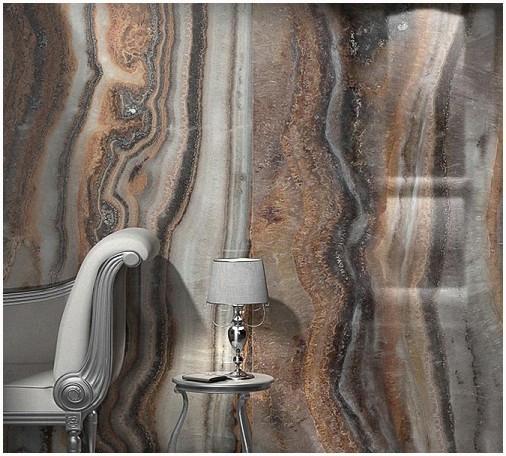 2. Второй вариант керамогранита — материал с полированным покрытием. Данный материал, по окончании обжига обрабатывается особыми составами в виде абразивных веществ. Затем, он получает дополнительный зеркальный блеск, помимо этого, текстура материала отличается насыщенностью и глубиной. Данный материал не рекомендуется использовать для отделки пола, из-за большого уровня его скольжения, но для стен — это совершенный вариант, придающим им необыкновенный и эффектный внешний вид.