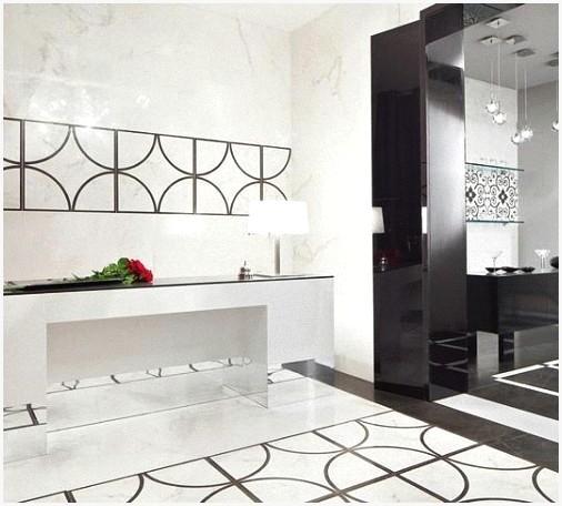 3. Керамогранит полуполированного типа изготавливается методом срезания и полировки готового керамогранита. За счет того, что глянцевая поверхность чередуется с матовой, материал получает весьма эффектный внешний вид. Данный материал употребляется только в ходе отделки стен. Его цена мало выше, нежели у матового керамогранита.