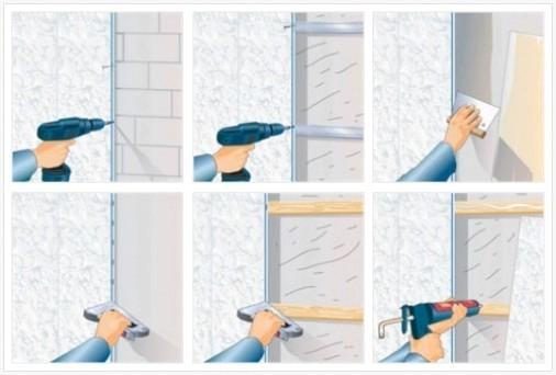 Если вы решили о деревянном каркасе, вначале начинайте заниматься его базой. Приготовьте деревянные бруски для установки каркаса. Толщина брусков обязана зависеть то того, будет ли планироваться между панелями и каркасом утеплитель, который разрешит дополнительно звукоизолировать помещение и сделать его более комфортным. Стоит подчернуть, что стеновые панели сами по себе являются звукоизолированными.