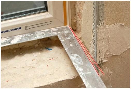Оконные и дверные откосы нужно вырабатывать с расширением вовнутрь – оставлять, так называемый, восход солнца откоса. Тупые углы создаются посредством деревянной рейки, приложенной к раме, либо особого маячка для откосов. Для выравнивания поверхности углы прокатывают трубой.